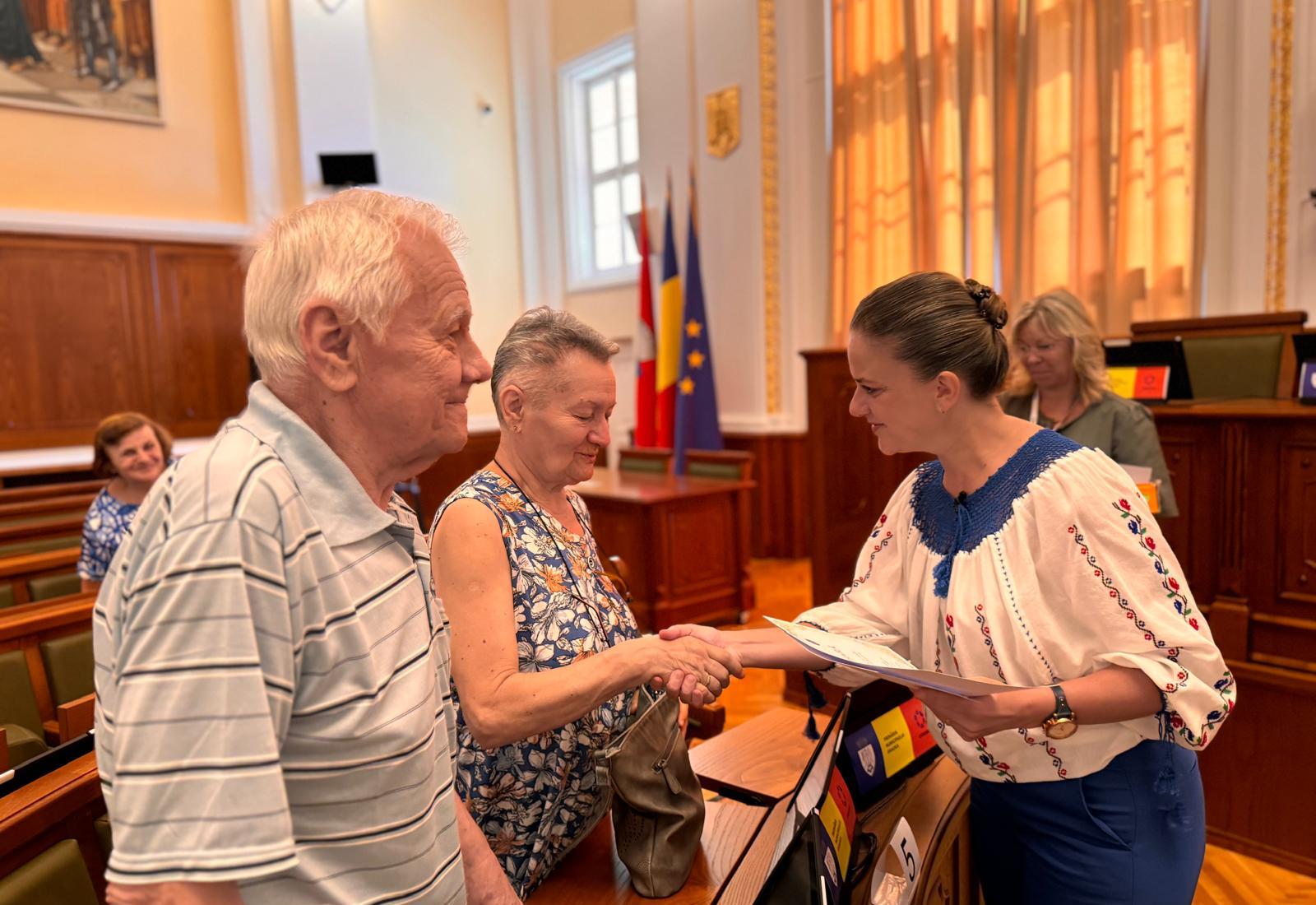 Festivitatea de premiere a avut loc în prezența seniorilor și a familiilor lor, fiecare pereche primind o diplomă aniversară, însoțită de flori și de un premiu în bani în cuantum de 1.000 lei.