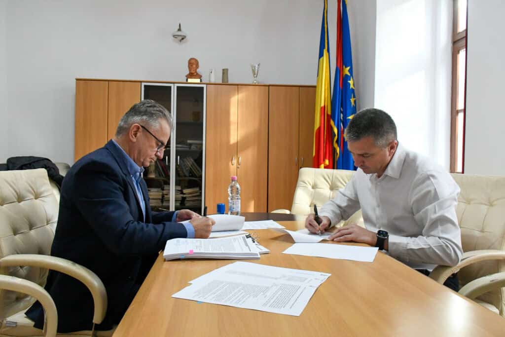 Documentul a fost semnat de Horea Florian Abrudan, vicepreședintele Consiliului Județean Bihor, și Dan Lucian Mihancea, director general al Antreprizei de Reparații și Lucrări (ARL) Cluj, compania desemnată câștigătoare a licitației publice.