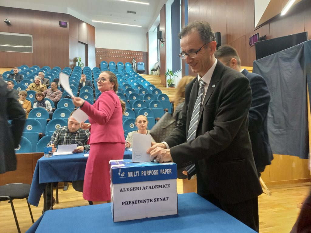 După derularea votului, „universal, secret și direct”, la care au participat toți membrii noului Senat prezenți în sală, conf. univ. dr. Claudia Timofte, președinta Biroului Electoral al Universității, a anunțat că fostul și noul președinte al Senatului Universității din Oradea, conf. univ. dr. Aurel Căuș, a primit 59 de voturi din tot atâtea posibile. „Vă dorim să fiți sănătos și cu putere de muncă, pentru a vă putea duce la îndeplinire lucrarea pe care, sunt sigură, ați gândit-o deja”, a spus conf. univ. dr. Florica Orțan, înainte de a-i preda oficial președinția Senatului celui proaspăt ales în această funcție.