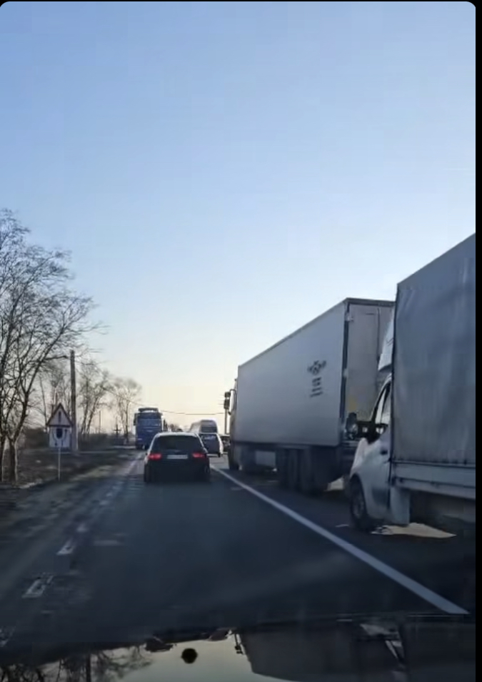 Din cauza incidentului, camioanele nu mai pot înainta în zonă, iar acest lucru a dus rapid la formarea unor coloane lungi de vehicule.