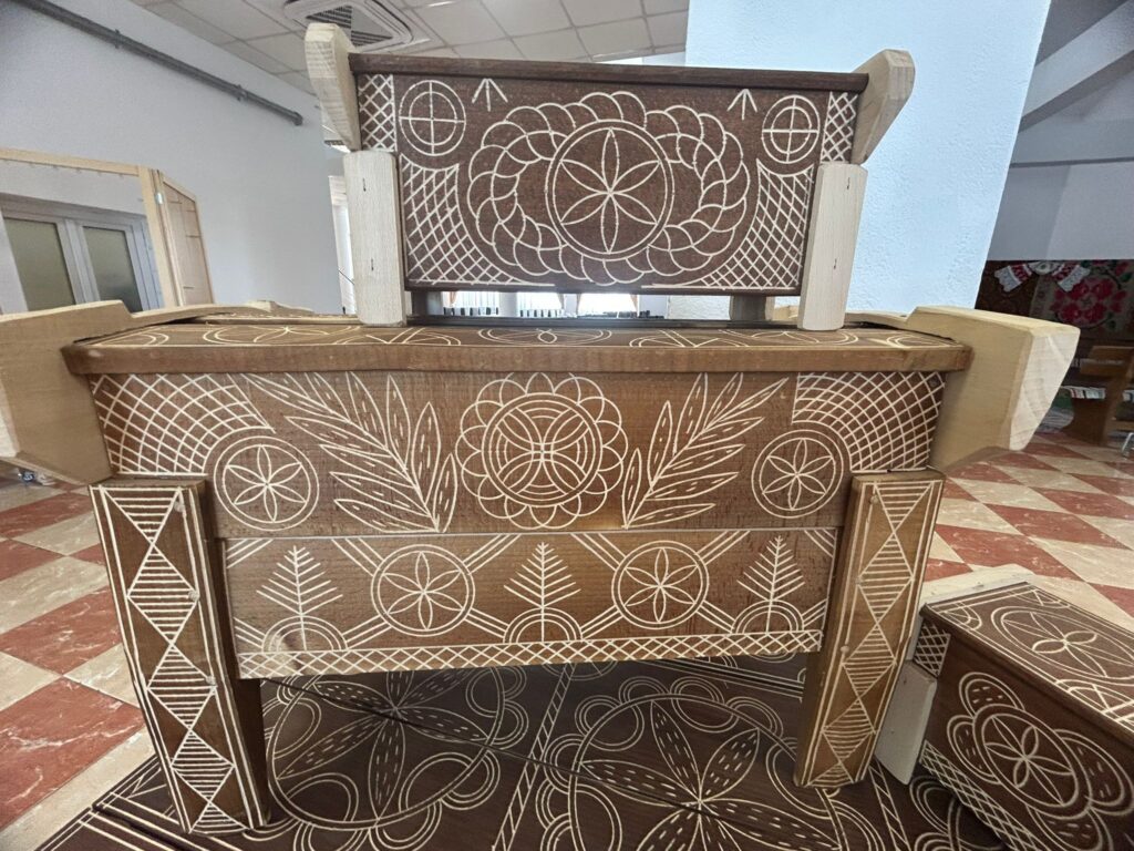 Realizată manual, cu motive tradiționale atent lucrate, lada reflectă măiestria meșteșugarilor și respectul profund pentru rădăcini.