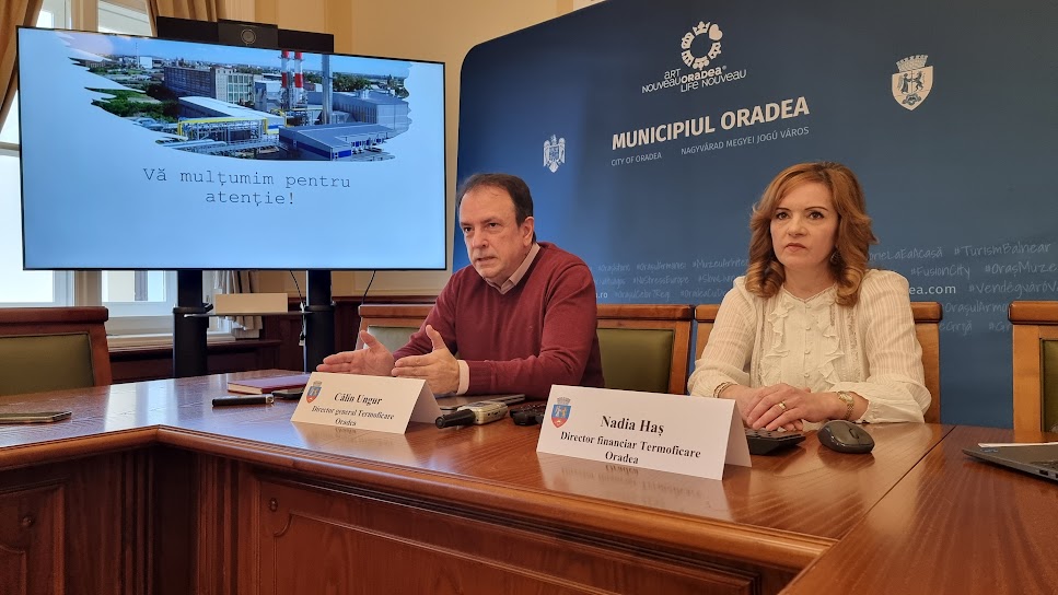 Călin Ungur, director general al Termoficare Oradea, și Nadia Haș, director financiar în cadrul aceleiași societăți, au susținut miercuri, 19 februarie, o conferință de presă la sediul Primăriei Oradea, prilej cu care au prezentat bilanțul activității pentru anul 2024. Finalizarea unor investiții strategice ce au dus la reducerea pierderilor din sistem și la creșterea eficienței energetice au fost principalele coordonate ale raportului.