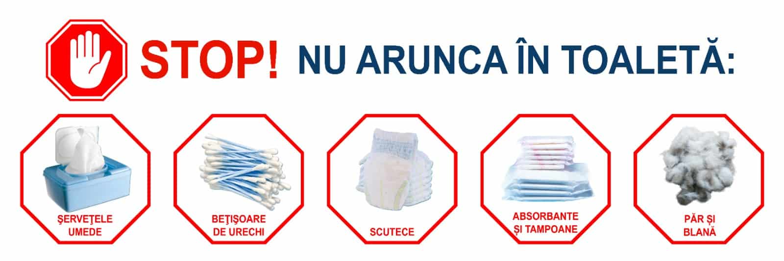 Aceste materiale nu se dizolvă în apă, iar odată ajunse în sistemul de canalizare, pot înfundă conductele și bloca pompele, afectând buna funcționare a întregii infrastructuri.