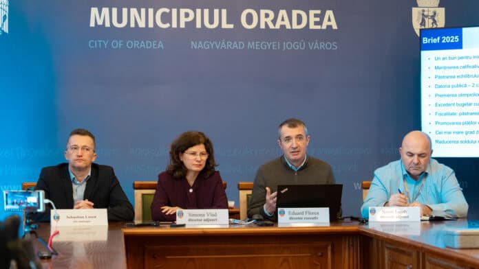 Direcția Economică a Primăriei Oradea a prezentat marți, 3 februarie, bilanțul pentru anul 2025, într-o conferință susținută de city-managerul Sebastian Lascu și echipa de conducere a direcției, formată din Eduard Florea, director executiv și adjuncții Sorin Iacob și Simona Vlad. Mesajul central a fost clar: Oradea a închis anul cu cel mai mare volum de investiții din istoria orașului, cu un grad record de colectare a taxelor și cu un echilibru bugetar păstrat în condiții economico-legislative dificile.