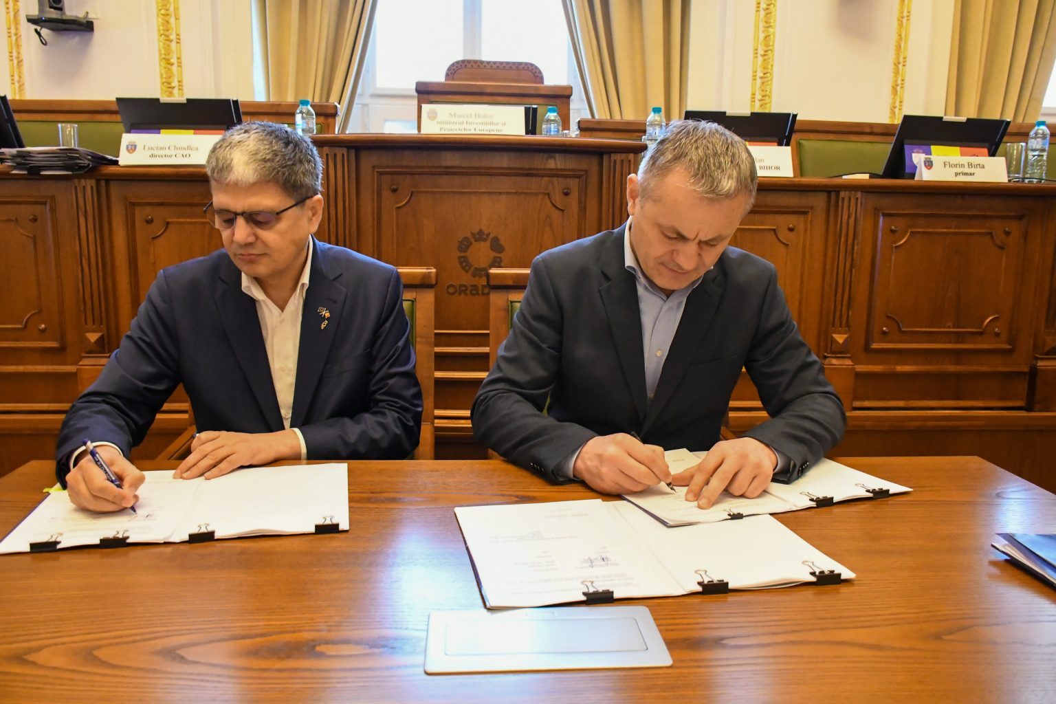 Vicepreședintele Consiliului Județean Bihor, Mircea Mălan, și ministrul Investițiilor și Proiectelor Europene, Marcel Boloș, au semnat astăzi, la Oradea, două contracte de finanțare cu fonduri europene pentru proiecte în valoare totală de peste 9,3 milioane de euro.