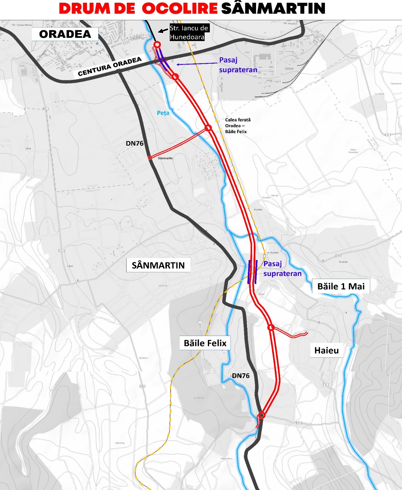 În ședința de Guvern de miercuri, 23 februarie, au fost aprobați indicatorii tehnico-economici pentru Centura Sânmartin, proiect denumit „Drum de legătură între municipiul Oradea și comuna Sânmartin„. În luna martie ar urma să fie adoptată o nouă Hotărâre de Guvern privind exproprierea terenurilor, procedură care se va finaliza în toamna acestui an.