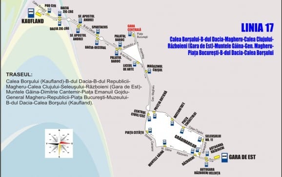 Începând de miercuri, 1 august 2018, se vor opera modificări la traseele liniilor de autobuz 17, 19 şi 23. Pe sensul de mers către Kaufland (Calea Borşului), traseul liniei 17 va fi deviat prin P-ţa Bucureşti, iar autobuzele vor opri, după ce vor face întoarcerea pe la sensul giratoriu, în staţia Gara Centrală (comună cu liniile 11, 18 şi 22).