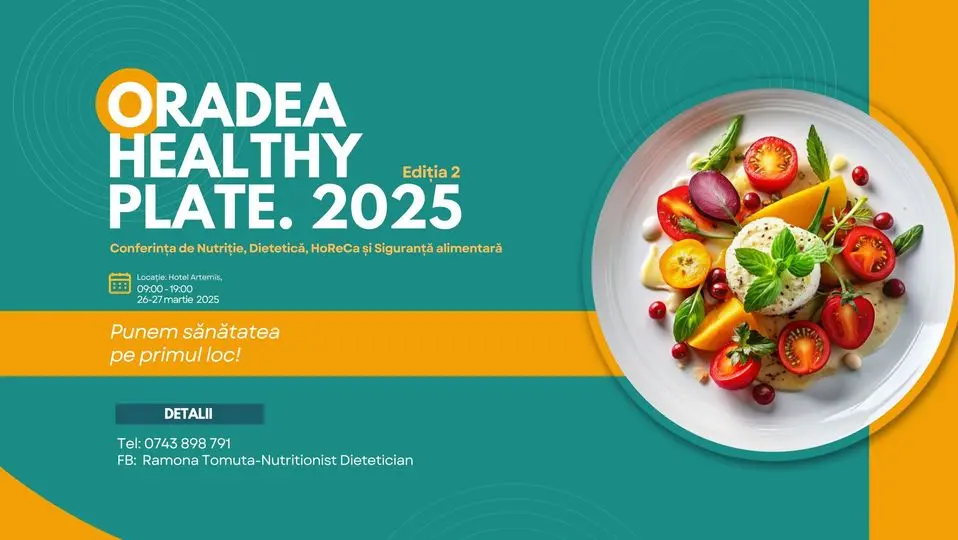 În perioada 26-27 martie 2025, Hotelul Artemis va găzdui cea de-a doua ediție a Oradea Healthy Plate, eveniment la care vor fi prezentate soluții, idei și informații legate de transformările spectaculoase aduse de nutriție, dietetică și siguranța alimentară.
