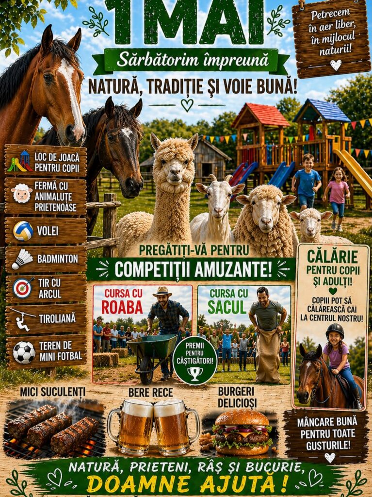Evenimentul organizat de 1 Mai promite o experiență completă pentru copii și adulți, într-un cadru natural, cu activități diverse și atmosferă relaxată.