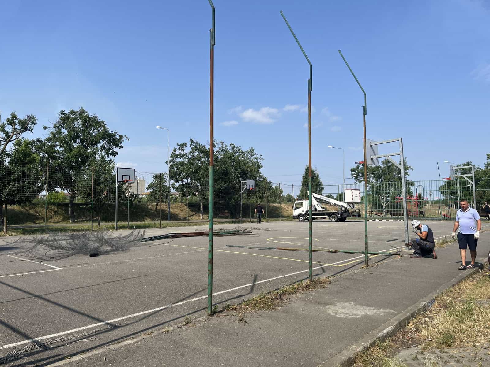 Pentru a permite extinderea spațiului sportiv, zona de fitness existentă va fi relocată lângă locul de joacă din apropiere. În jurul terenurilor va fi amenajată o zonă de siguranță și un trotuar perimetral.