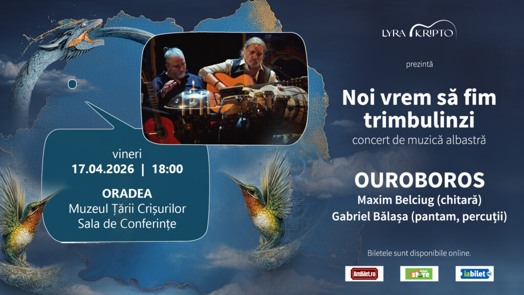 Așadar, recapitulând, vineri, 17 aprilie 2026, trimbulinzii Maxim Belciug și Gabriel Bălașa vă invită la concertul lor inspirat intitulat “Noi vrem să fim trimbulinzi”, ceea ce, în traducere, înseamnă: „hai să nu mai fim rigizi măcar o oră”. Concertul începe la ora 18:00 și are loc la Muzeul Țării Crișurilor, în sala de conferințe. Biletele sunt disponibile online, pe ambilet.ro, ticketstore.ro și iabilet.ro.